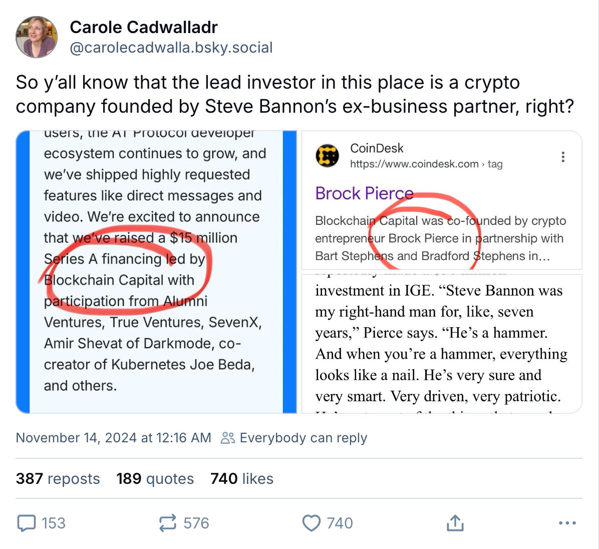 If the protocol is strong enough, this is true. But it’s still too early to tell if Bluesky is immune to the interests of far-right sympathising billionaires: